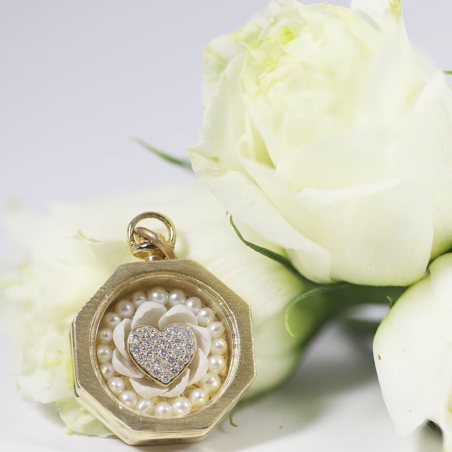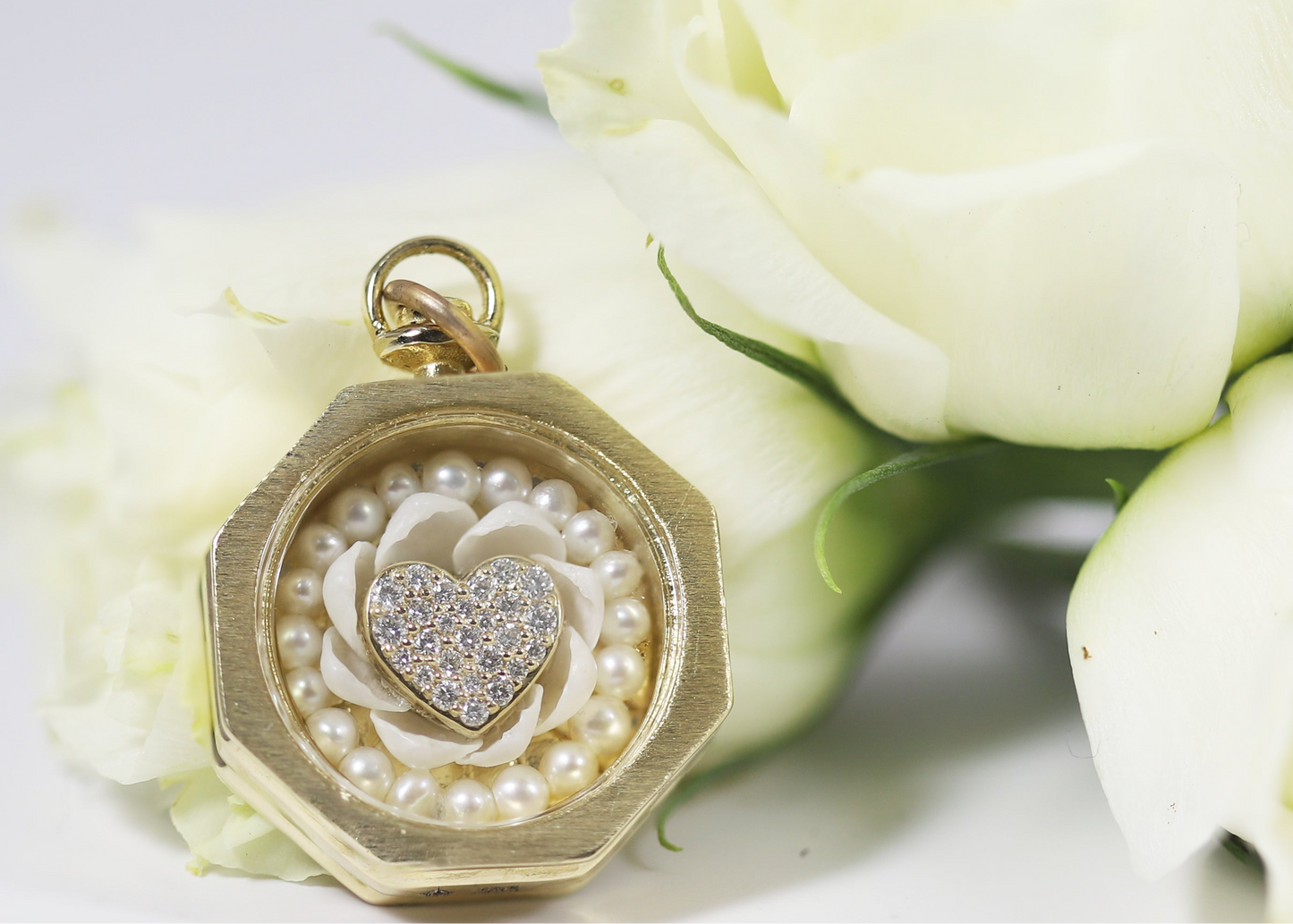 Quick View Sale Loading... Loading... Loading... Loading... Loading... Be Mine Diamond Framed Sailor's Valentine $8,550.00 Journey back to a time when seashells were whispers of the sea's mysteries. These fragile tokens carried stories of distant lands and whispered secrets. In the age of exploration, sailors etched tales of devotion onto seashells, crafting tokens of affection for beloved ones left behind. Melissa delicately weaves history into our jewelry from these tales of love and adventure. Each piece embodies the essence of bygone romances, where seashells, once treasures of the ocean, now sparkle in gold, a testament to love's enduring journey. 14k Yellow gold White cup shells, pearls, diamond framing and heart Reversible compass design Sapphire crystal cover 30 mm high x 20 mm wide x 8 mm deep Chain sold separately Metal Yellow Gold Gemstones Diamond Size Small Yellow Gold / Diamond / Small - $8,550.00 Quantity - + You can't add more of this item to the cart Add to cart This item is a recurring or deferred purchase. By continuing, I agree to the cancellation policy and authorize you to charge my payment method at the prices, frequency and dates listed on this page until my order is fulfilled or I cancel, if permitted. View all details Be Mine Diamond Framed Sailor's Valentine
